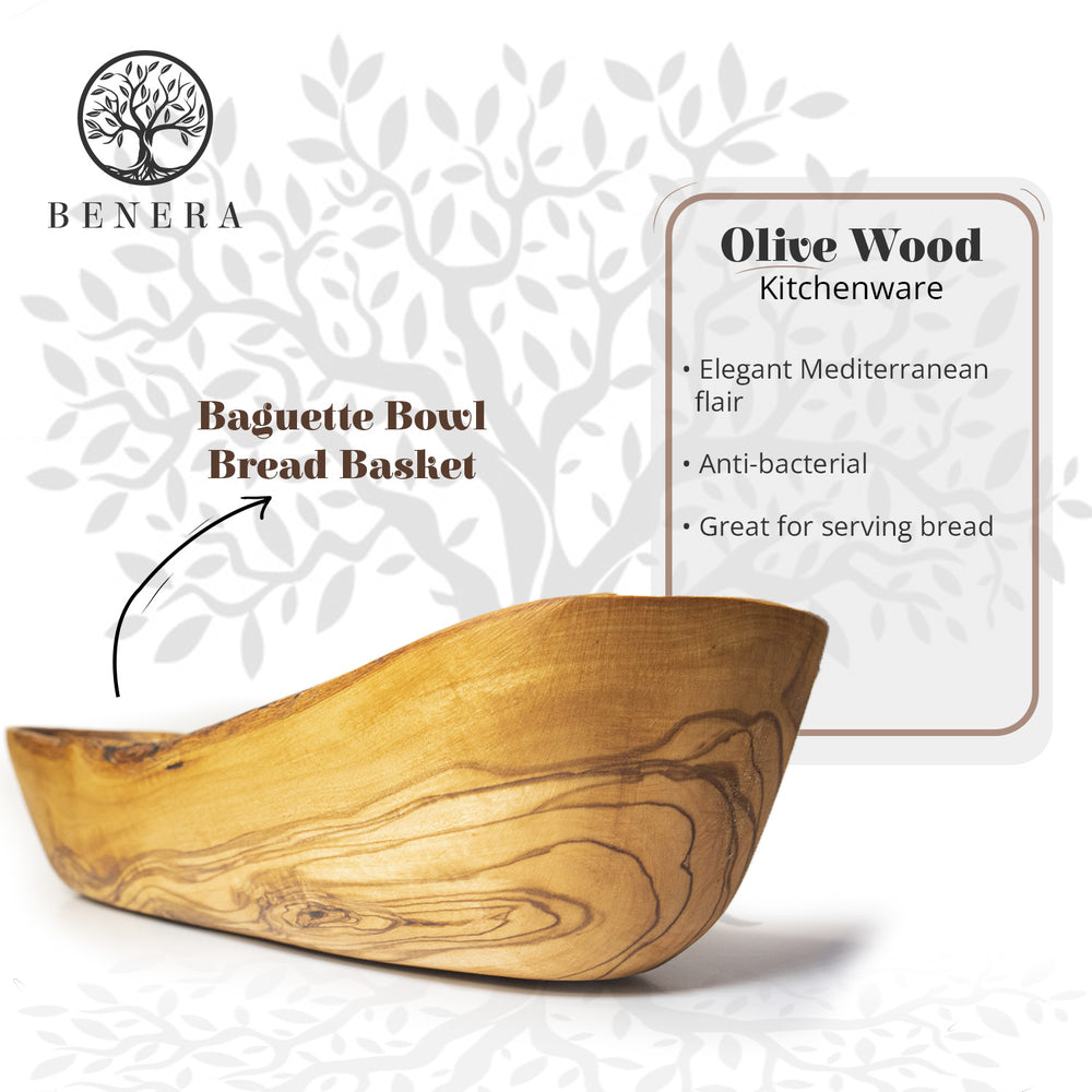 Olive Wood Bread & Baguette Basket - Rustic Handmade Dough Bowl 14 Inch