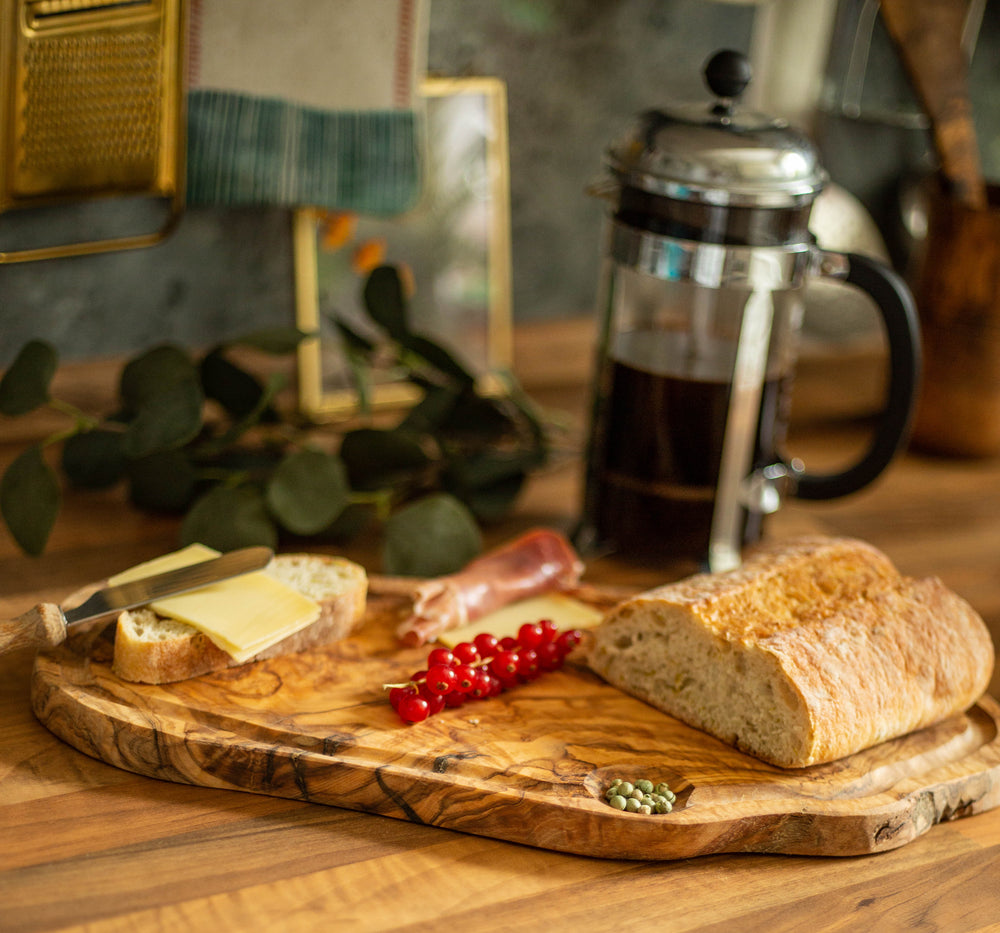 - Handcrafted from Mediterranean olive wood, each board features stunning natural grain.
