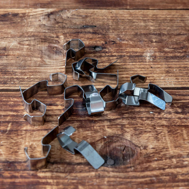 These official WECK stainless steel clips provide the perfect pressure to safely seal your WECK jars during boiling water or steam canning. Simply attach two clips to each jar while processing to ensure the glass lid, rubber ring, and jar form an airtight bond. After cooling, the clips can be removed and reused for your next canning project.
